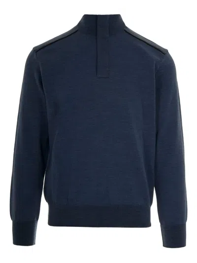 Half-zip Sweater In Soft Cool Touch Wool With Typhoon Re-4x4 Stretch Details In Blue