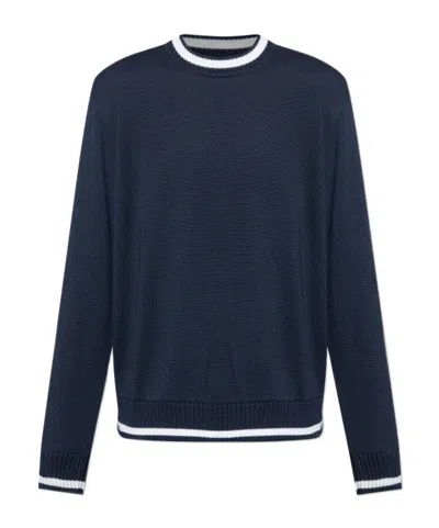 Muted Blue Crew Neck Wool Sweater With Ribbed Cuffs