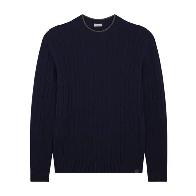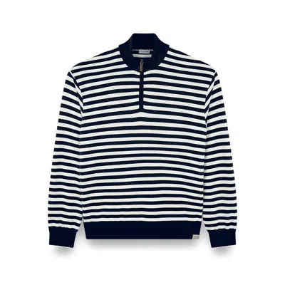 Knitted Polo Sweater V Neck Ribbed Cuffs Hem In Blue