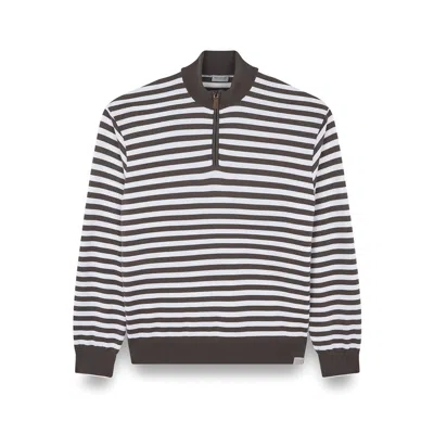 Striped Wool Cashmere Half Zip Sweater In Gray