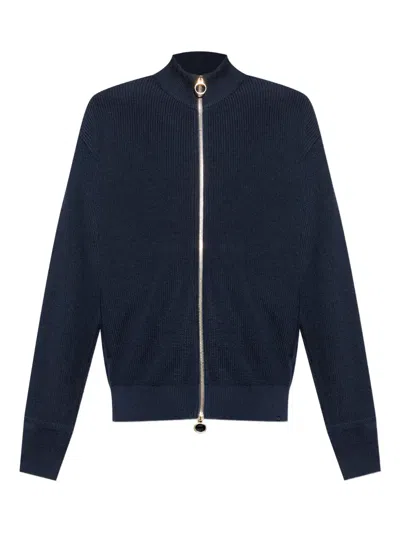 Ribbed Zip-up High-neck Cardigan Clothing In Blue