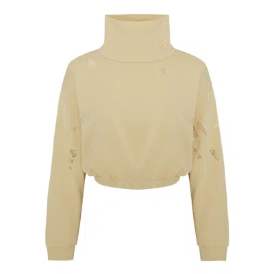 Women's Neutrals / Green Destroyed High Neck Sweat - Chino Green