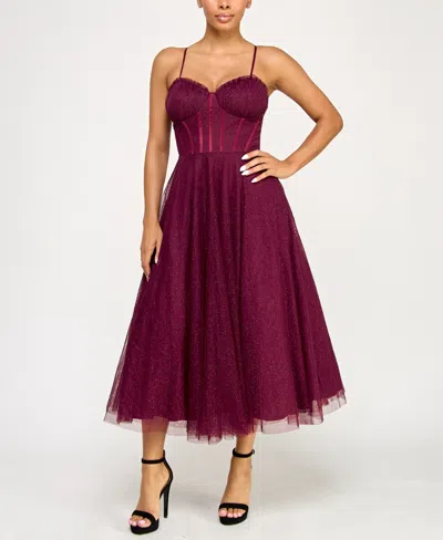Juniors' Strappy Glitter Embellished Petal Dress In Blue