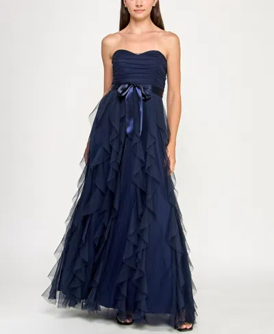 Juniors' Corkscrew-ruffled Strapless Gown In Burgundy,pink