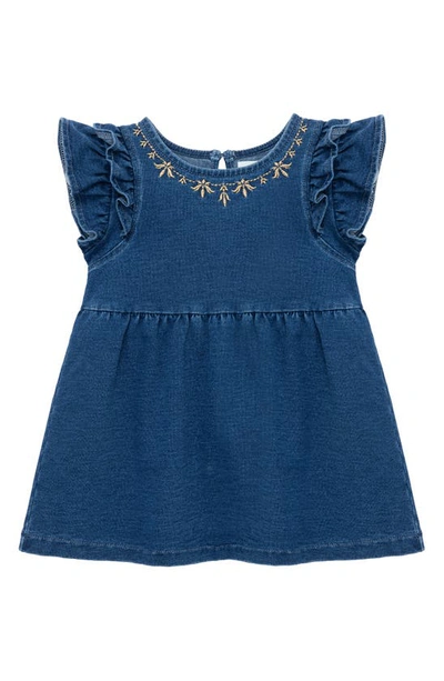 Babies' Embroidered Ruffle Sleeve Denim Dress