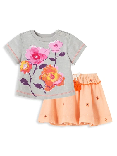 Baby Girl's Little Medallion 2-piece Floral T-shirt & Skirt Set In Grey