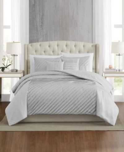 James Pleated 9 Piece Comforter Set, Queen In Silver