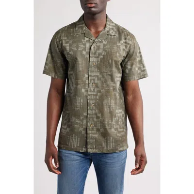 Gateway Geo Print Short Sleeve Cotton Button-up Shirt In Green