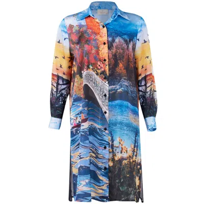 Women's Sweet Memories Satin Long Shirt Dress In Multicolor