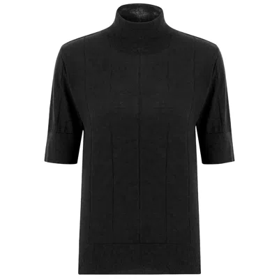 Women's Betty High Neck Short Sleeve Knitwear Fine Blouse - Black