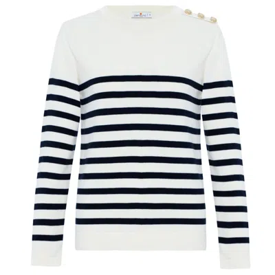 Women's White Bardot 100% Organic Cotton Stripe Pullover In Ecru/navy