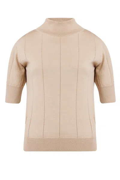Women's Brown Betty High Neck Short Sleeve Knitwear Fine Blouse - Beige