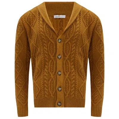 Brown Benjamin Shawl Collar Cable Knit Men's Cardigan - Mustard