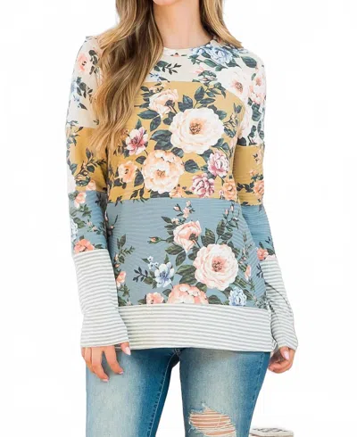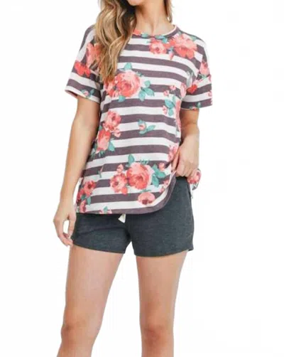 Short Sleeved Striped Floral Tee In Multicolor