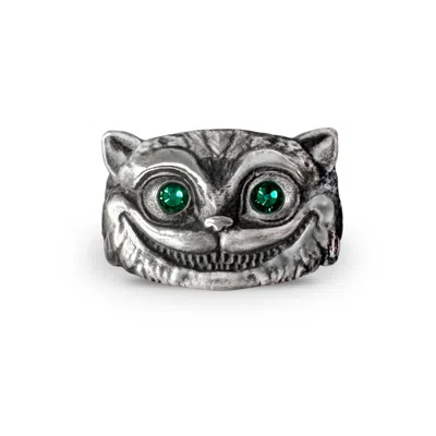 Cheshire Cat ~ Alice In Wonderland Ring - Silver - Green Emerald Men's