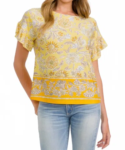 Floral Ruffle Short Sleeve Top In Yellow In Gold