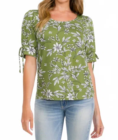 Scoop Neck Short Sleeve With Tie Detail In Floral Green