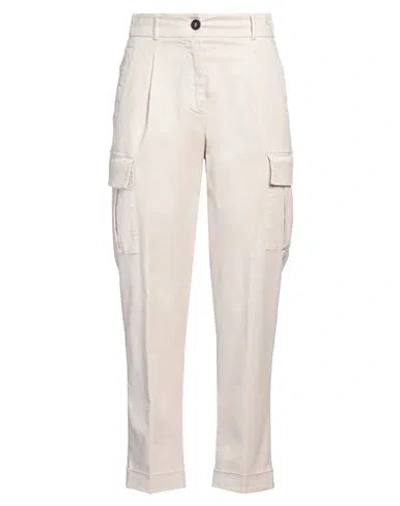 Woman Pants Cream Size 6 Cotton, Tencel, Silk, Elastane In White