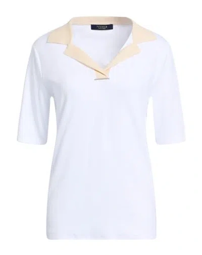 Woman Polo Shirt White Size 14 Cotton, Elastane, Silk