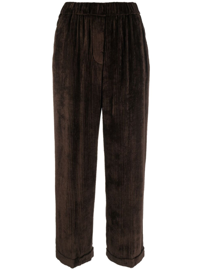 Paperbag Belted-waist Corduroy Trousers In Amber Beige