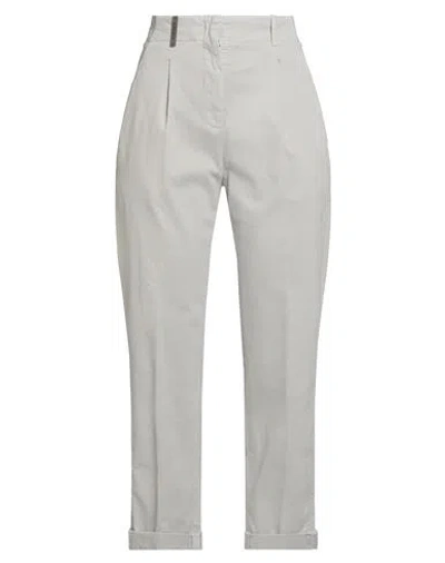 Woman Pants Light Grey Size 10 Cotton, Tencel, Silk, Elastane In Gray
