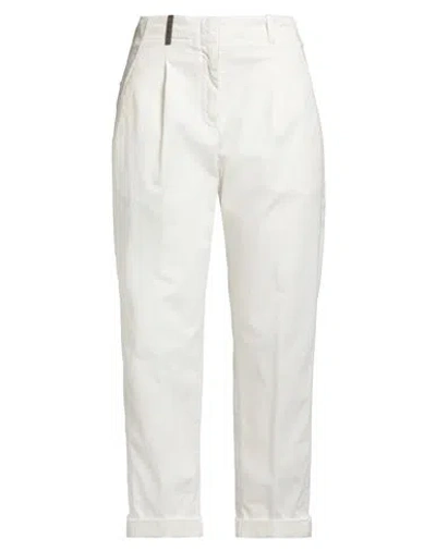 Woman Pants Ivory Size 10 Cotton, Elastane In White