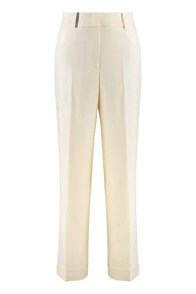 Tailored Trousers In Stretch Cotton With Pleats In Brown