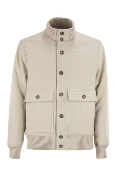 Ribbed-collar Flap-pocket Jacket In Neutral