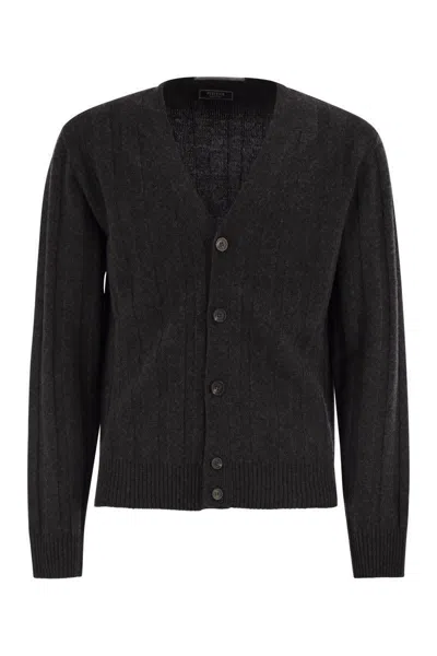 Wool And Cashmere Cardigan With V-neck In Black