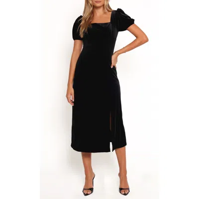 Petal & Pup Quinnie Puff Sleeve Velvet Midi Dress In Black