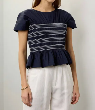 Ruffle Smocked Short Sleeve Blouse In Navy In Blue