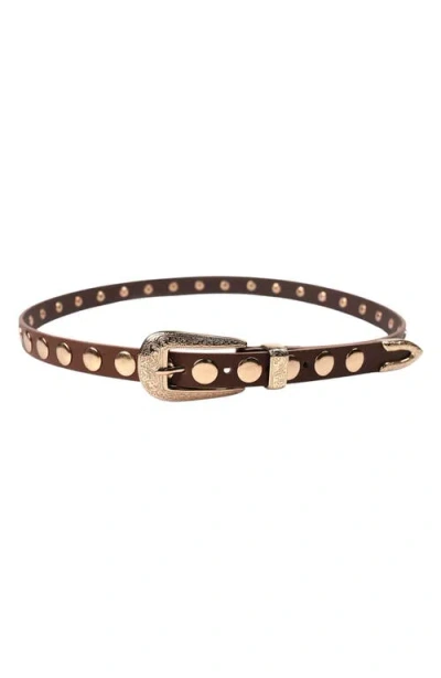 Modern Rodeo Faux Leather Belt In Mocha Suede/gold