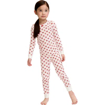 Kids' Blissful Bows Fitted Two-piece Pima Cotton Pajamas In Neutral