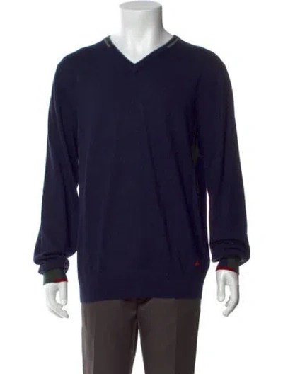 Pre-owned V-neck Long Sleeve Pullover In Blue