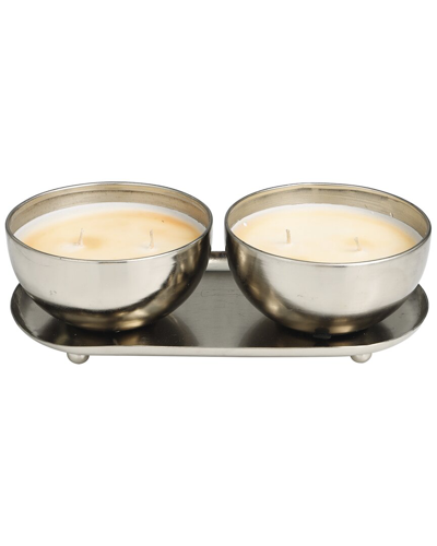 Set Of 2 White Wax Jasmine Scented 12oz 2-wick Candle