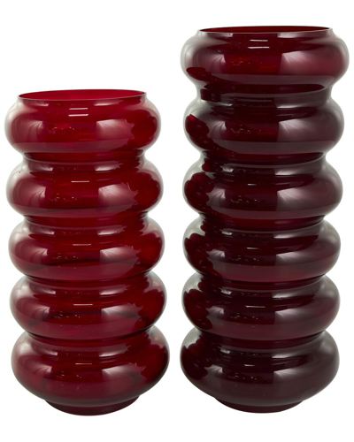 Set Of 2 Red Glass Bubble Vase