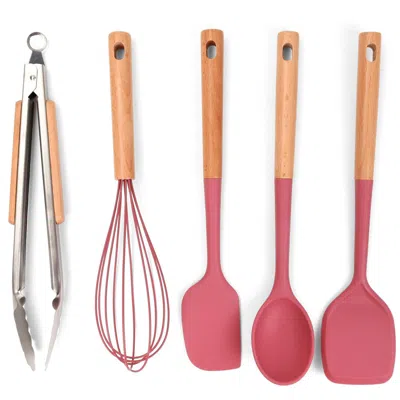 Grove 18-piece Nonstick Ceramic Coated Cookware Set In Burgundy