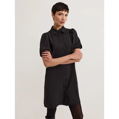 Womens Collared Spot-print Woven Tunic Mini Dress In Black