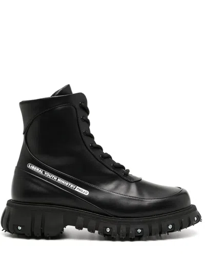 Screw-detail Leather Ankle Boots In Black