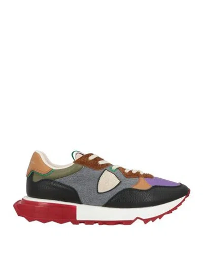 Man Sneakers Black Size 8 Leather, Textile Fibers In Multi