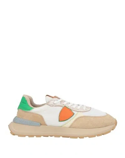 Man Sneakers Beige Size 9 Leather, Textile Fibers In Multi
