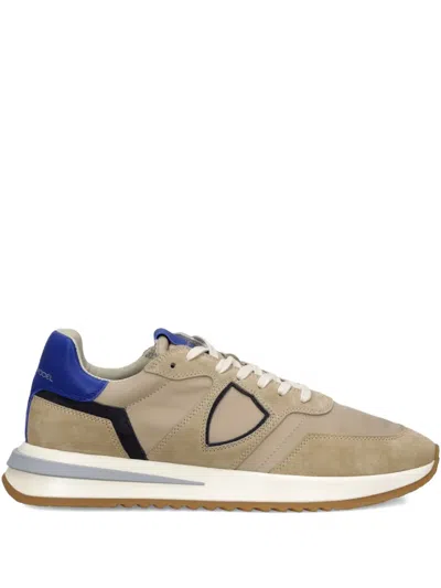 Suede-panelled Low-top Sneakers In Neutral