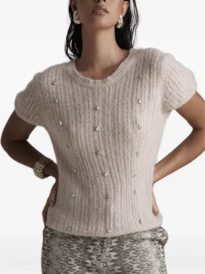Embellished Cable-knit Top In Neutral