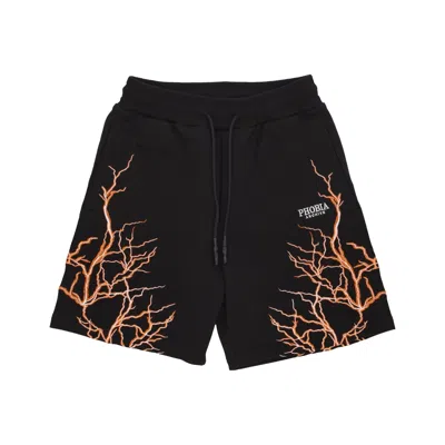 Starry Lightning Print Cotton Shorts In Black