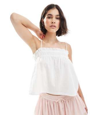 Sleeveless Cropped Pointelle Top With Bow Trim
