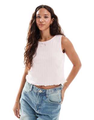 Sleeveless Cropped Pointelle Top With Bow Trim