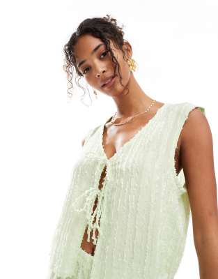 Textured Tie Front Sleeveless Top In Gray