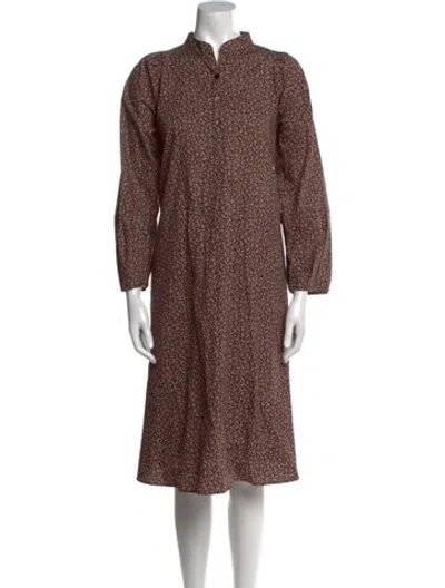 Pre-owned Printed Midi Length Dress In Brown