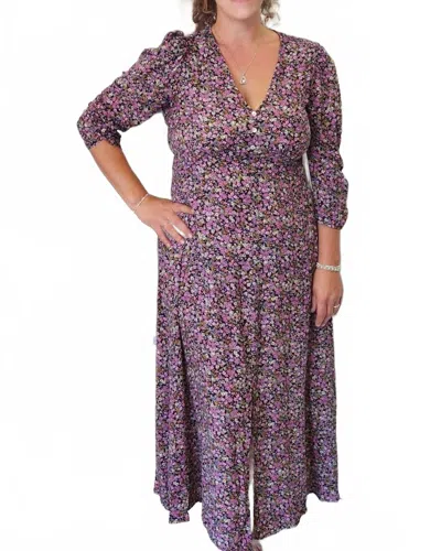 Floral Print Balloon Sleeve Dress In Red/blue In Multi