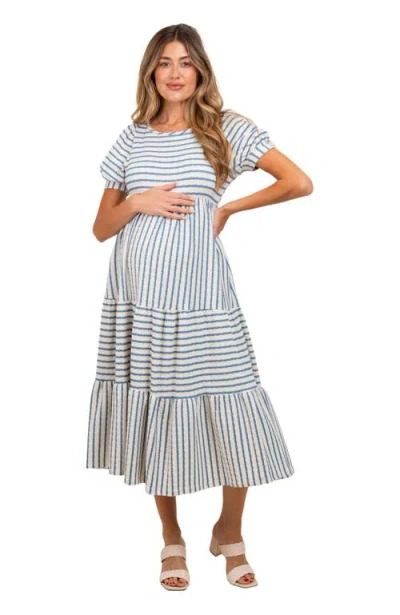 Striped Short Sleeve Tiered Maxi Dress In Blue